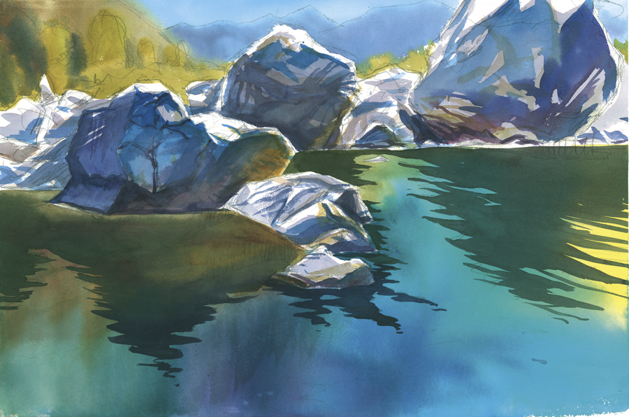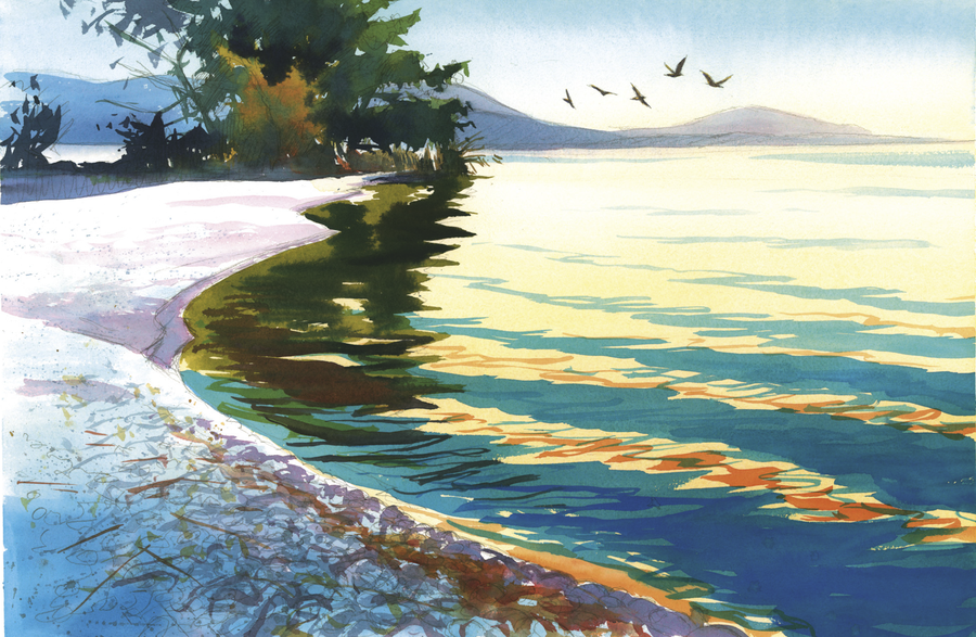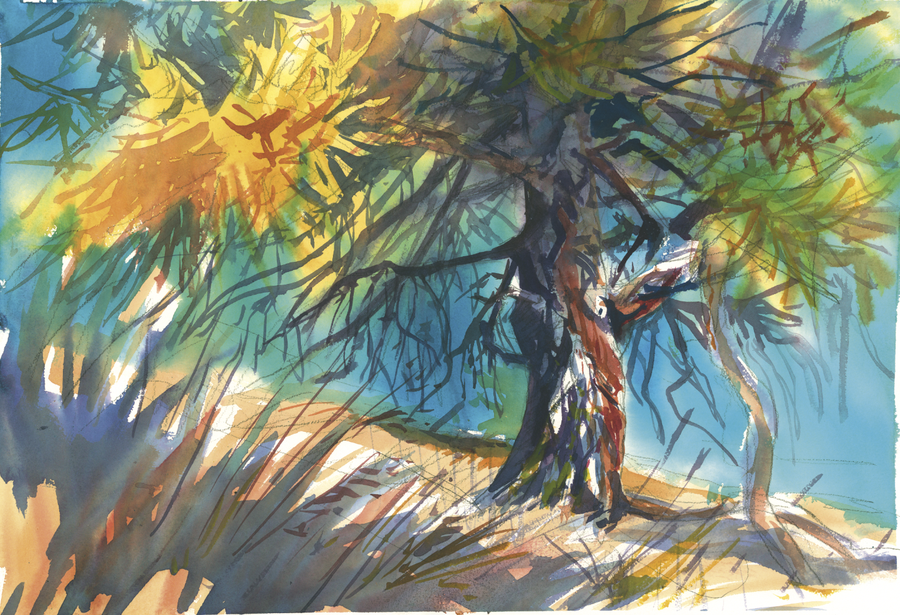 Format de x17 aquarelles de terrain 18x26 cm, série en mode carnet de voyage, île grecque