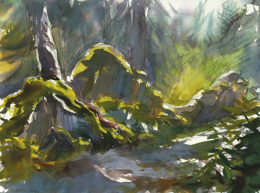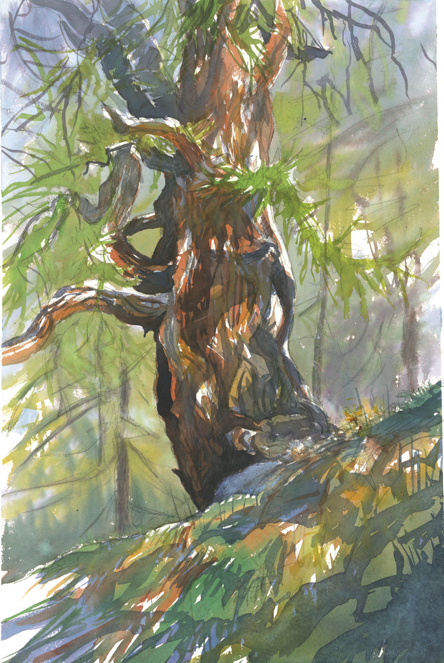 Vers Lü, Val Müstair, une forêt où un ours est passé quelques jours avant